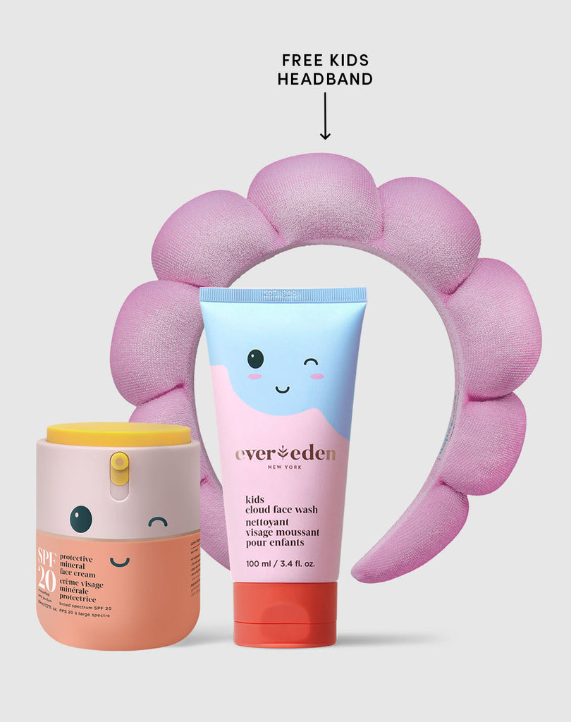 Kids Cloud Face Wash infuses coconut juice extract and gentle ingredients to wash away dirt, leaving skin soft and refreshed. Kids Protective Mineral Face Cream SPF20 provides 4-in-1, year-round protection against UVA/UVB, blue light damage, pollution, and dryness.