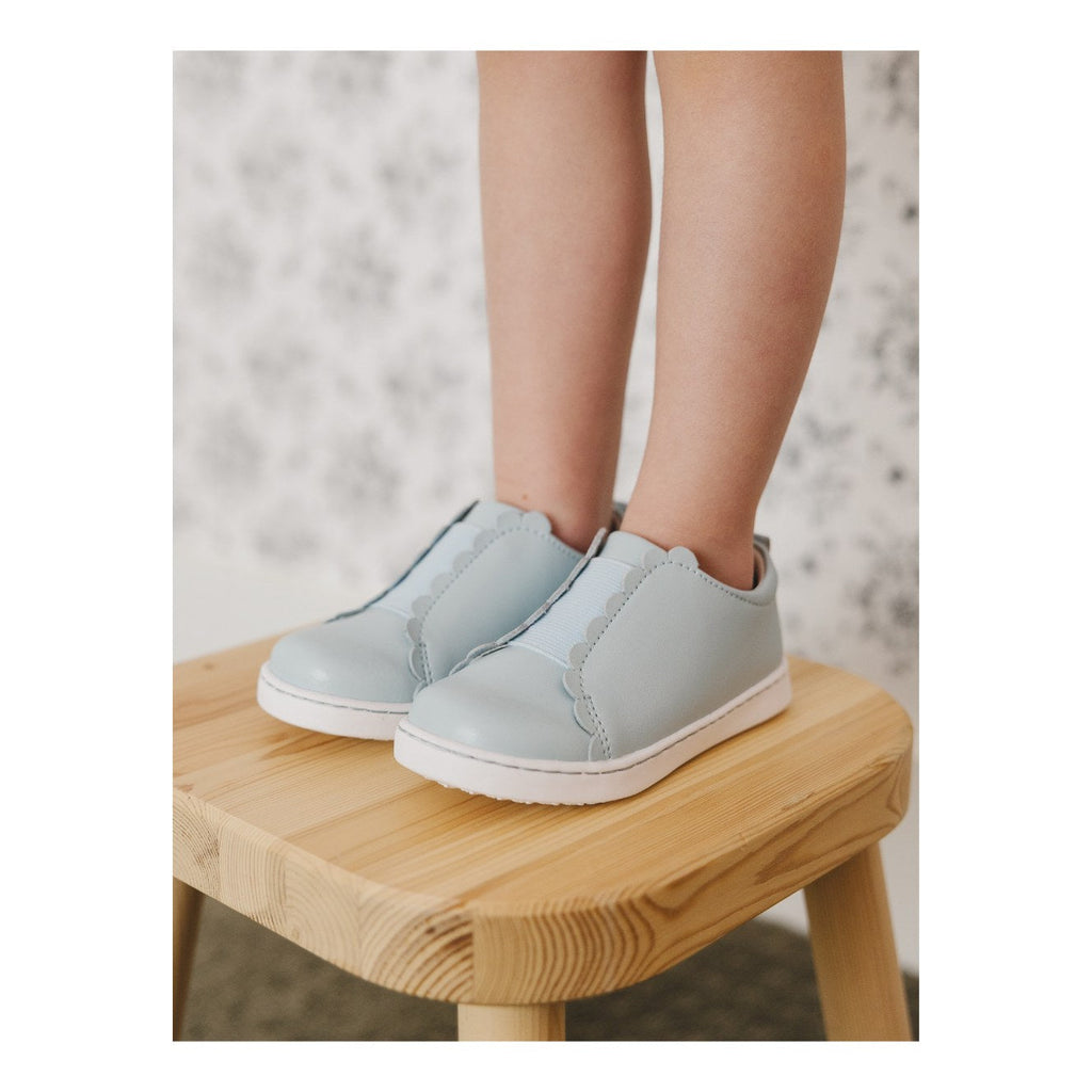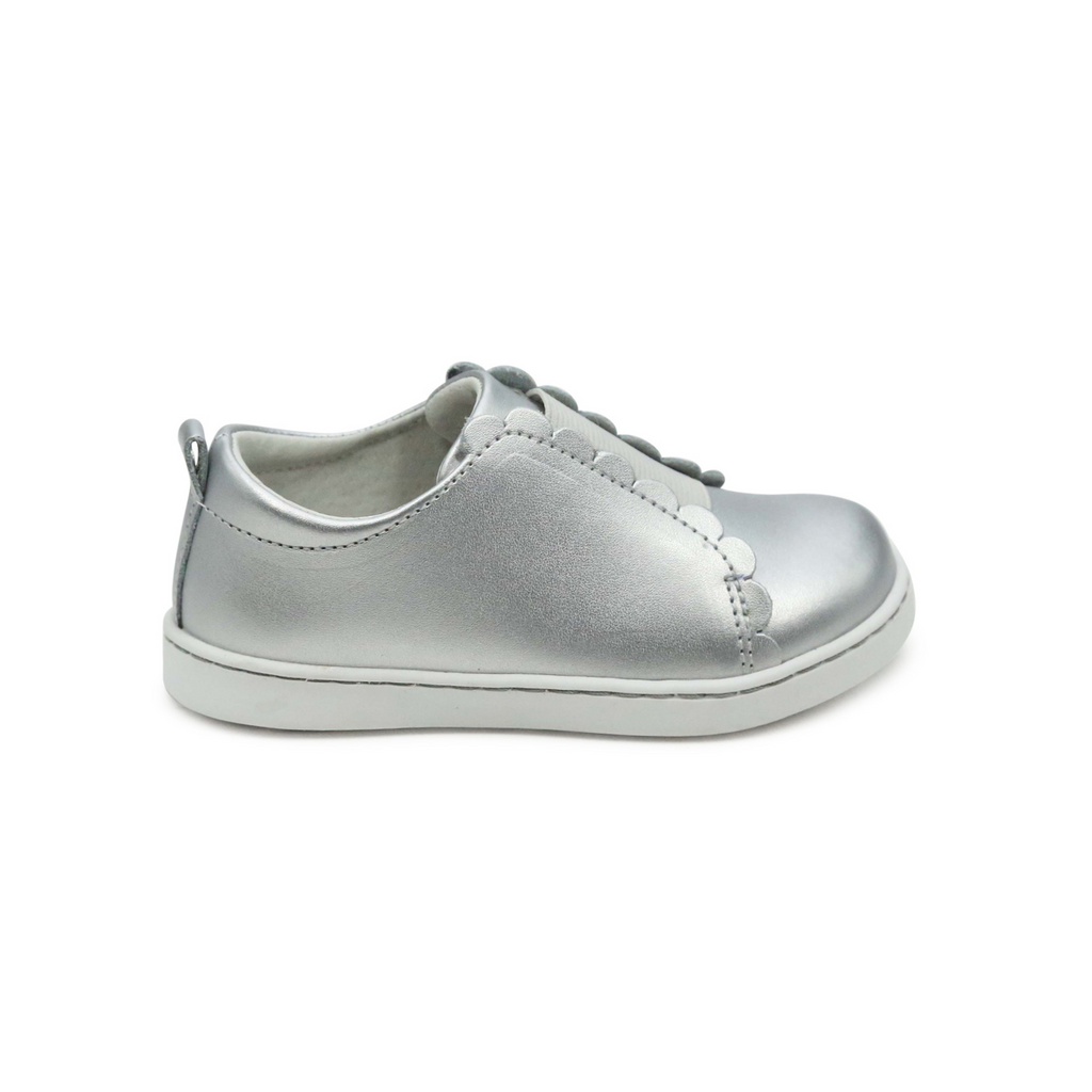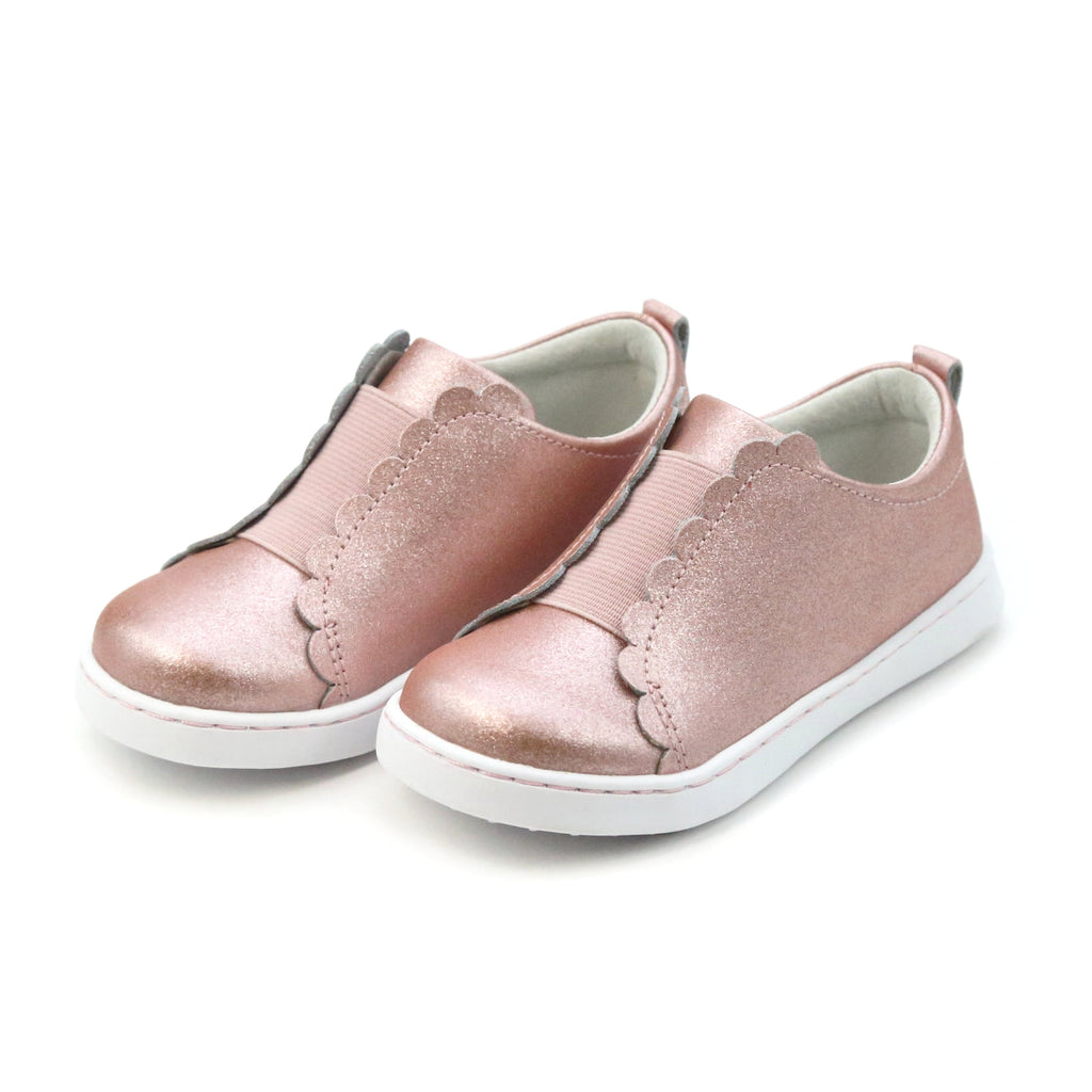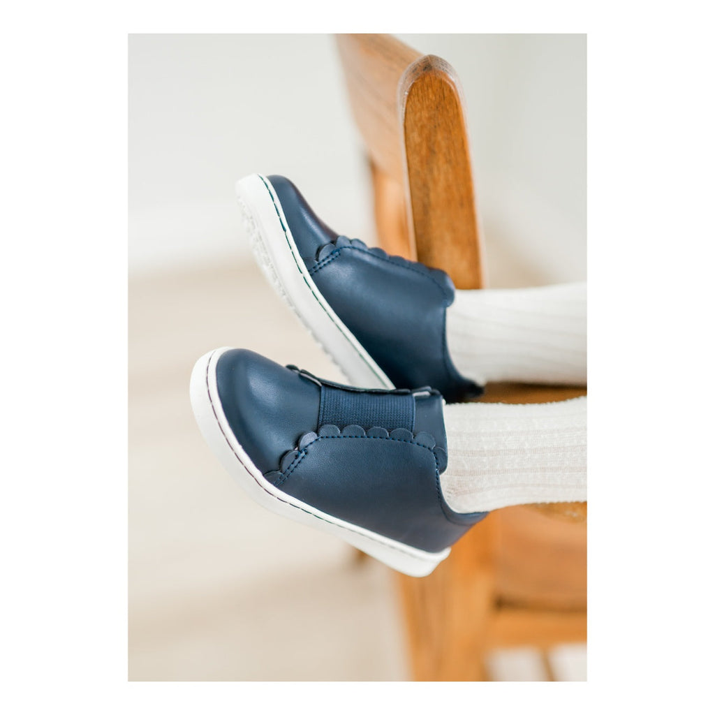 Scalloped and sweet, sister to the Caroline, the the Phoebe is the first slip on sneaker in our collection. We love the matching elastic for a semi-sporty look.