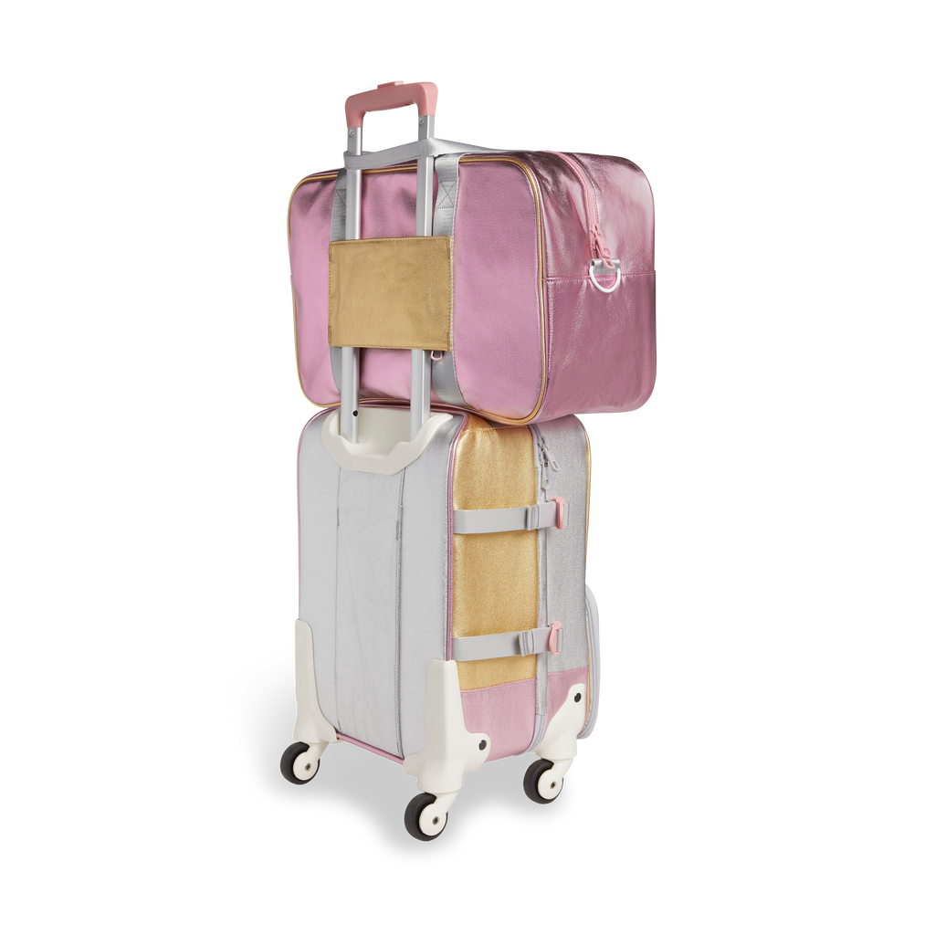 Perfect for after-school activities, sleepovers, and weekend getaways. Designed with two handles and an adjustable crossbody strap for easy carrying, plus detachable pouches for shoes and dirty clothes and interior pockets to keep everything organized.