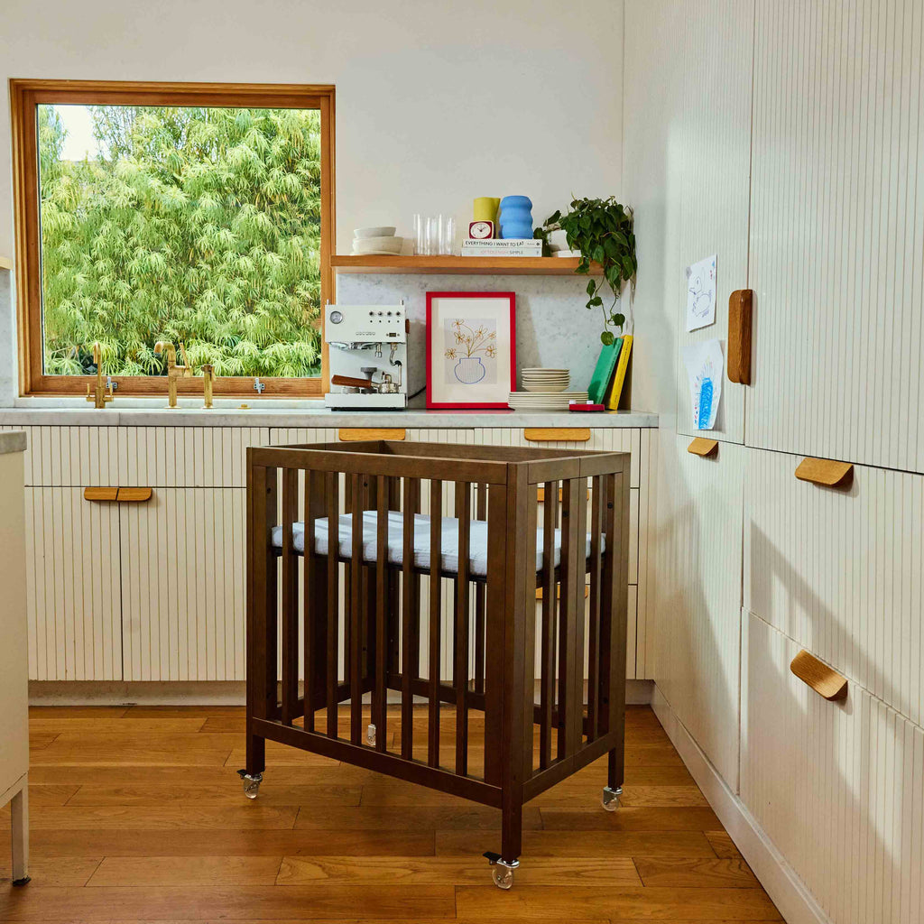 The Babyletto Rolli All-Stages® Crib is a compact, convertible sleep solution designed to grow with your child from newborn through toddler years. It includes everything needed to transition from a bassinet to a full-size crib and toddler bed, all in one thoughtfully designed package. Ideal for small spaces and modern lifestyles, Rolli’s clean lines, caster wheels, and included conversion kits make it a practical and versatile nursery essential.
