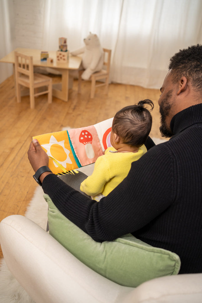 Fun fact, red is the first color babies see! The other side features a mix of vibrant colors that foster baby’s vision as they develop the ability to see additional colors on the spectrum. This compact and portable book and tummy time toy is perfect for travel, with tie-able ribbons for easy folding and storage.
